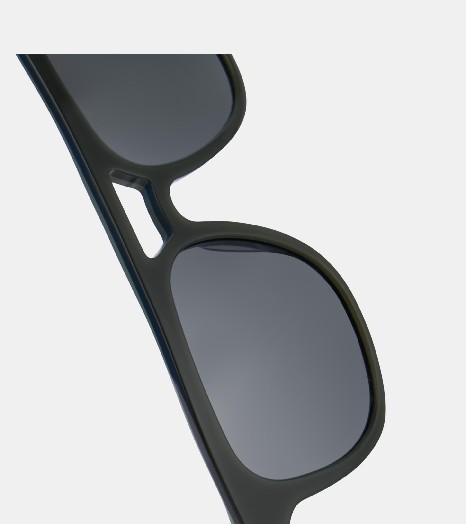 xThe Berlin Code Double Green is an everyday sporty polarized sunglasses crafted in premium sustainable bio acetate, sourced from wood pulp and cotton fibers, making them eco-friendly and durable. Milky dark khaki green external frame and solid light green inside frame with black tips. Black smoke optics that respect the environment and give a unique balance between clarity and resistance. This design has a double bridge for a more sophisticated vintage look.