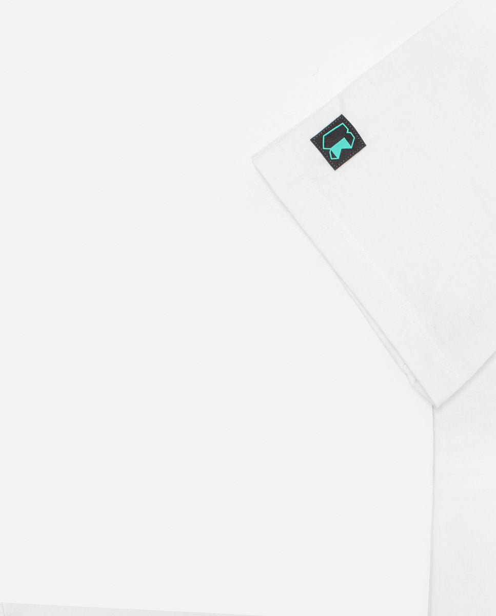 xCamiseta Icónica Kimoa Eco clásica con logo Kimoa estampado engomado verde.