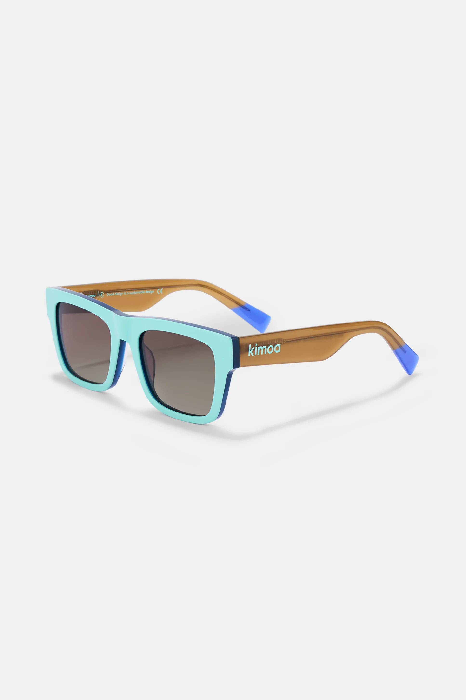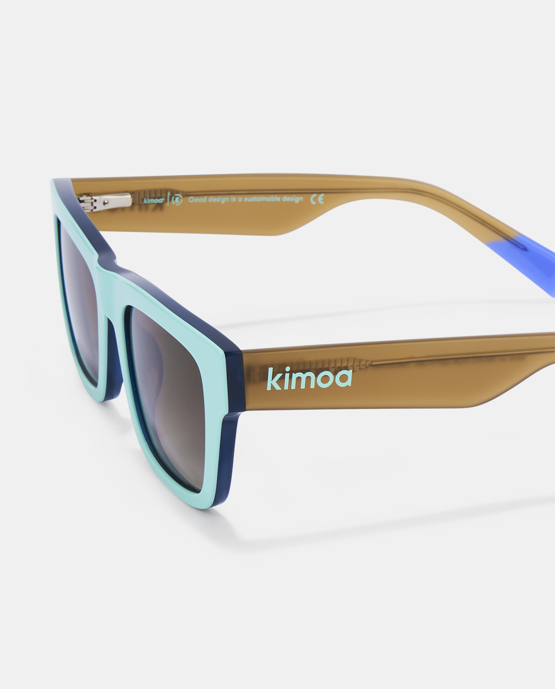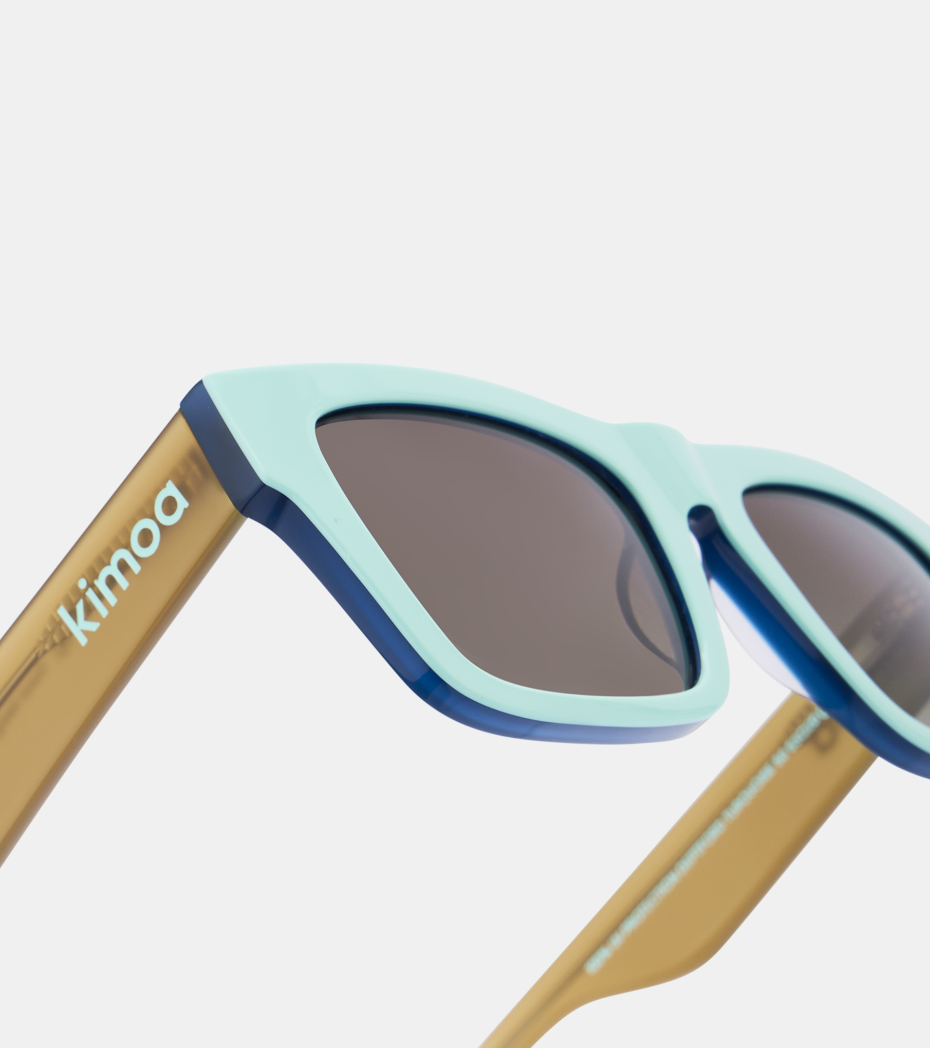 xThe Deptford Turquoise is an everyday lifestyle polarized multicolor sunglasses crafted in premium sustainable bio acetate, sourced from wood pulp and cotton fibers, making them eco-friendly and durable. Thick square two-color layers frame mixing solid light turquoise on the front and milky dark blue on the back, and milky camel bold temples with milky dazzling blue tips. Smokey dark brown color polarized lenses respect the environment and give a unique balance between clarity and resistance. The wide temples have a distinctive shape that makes this model both unique and trendy.
