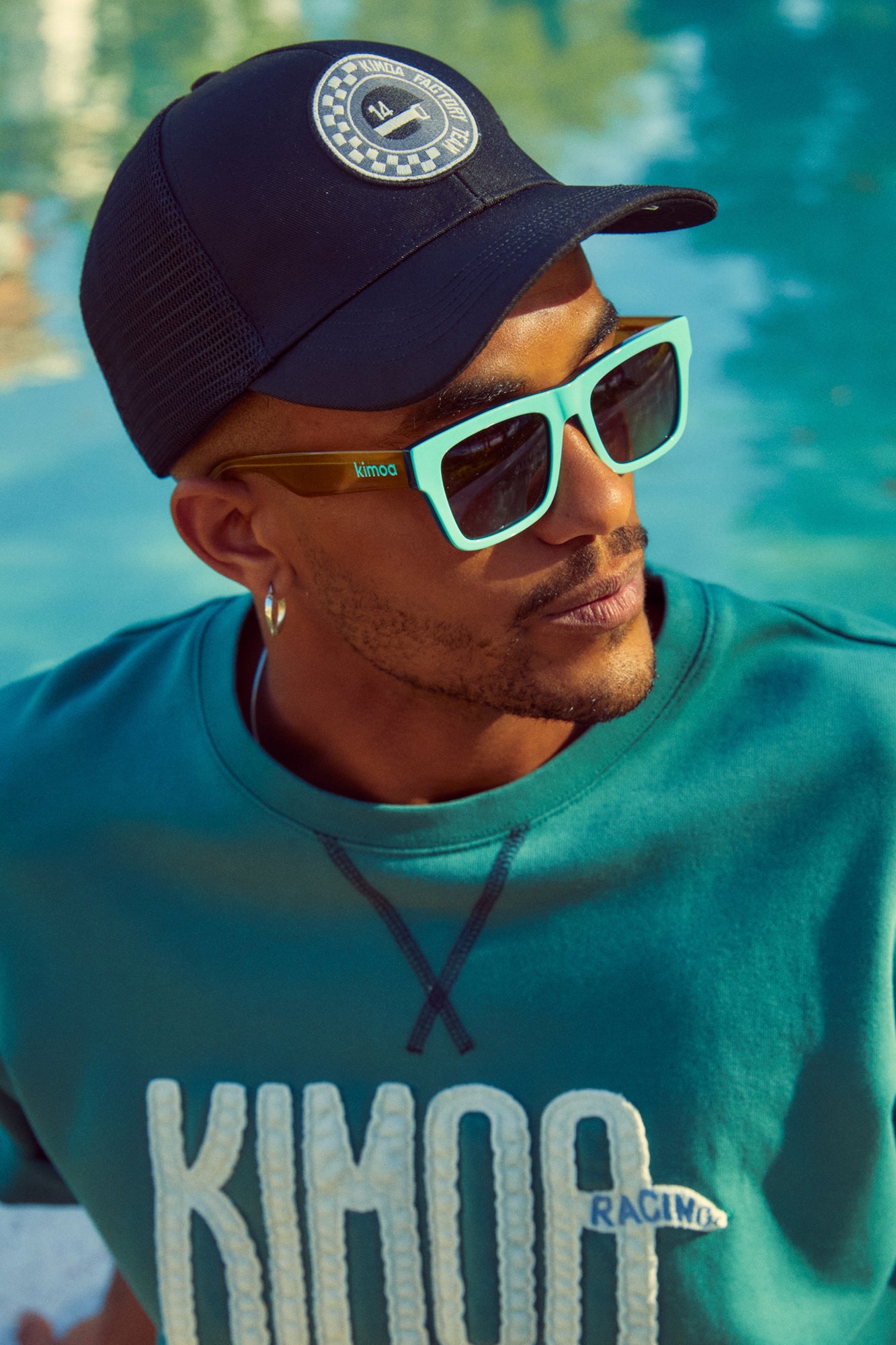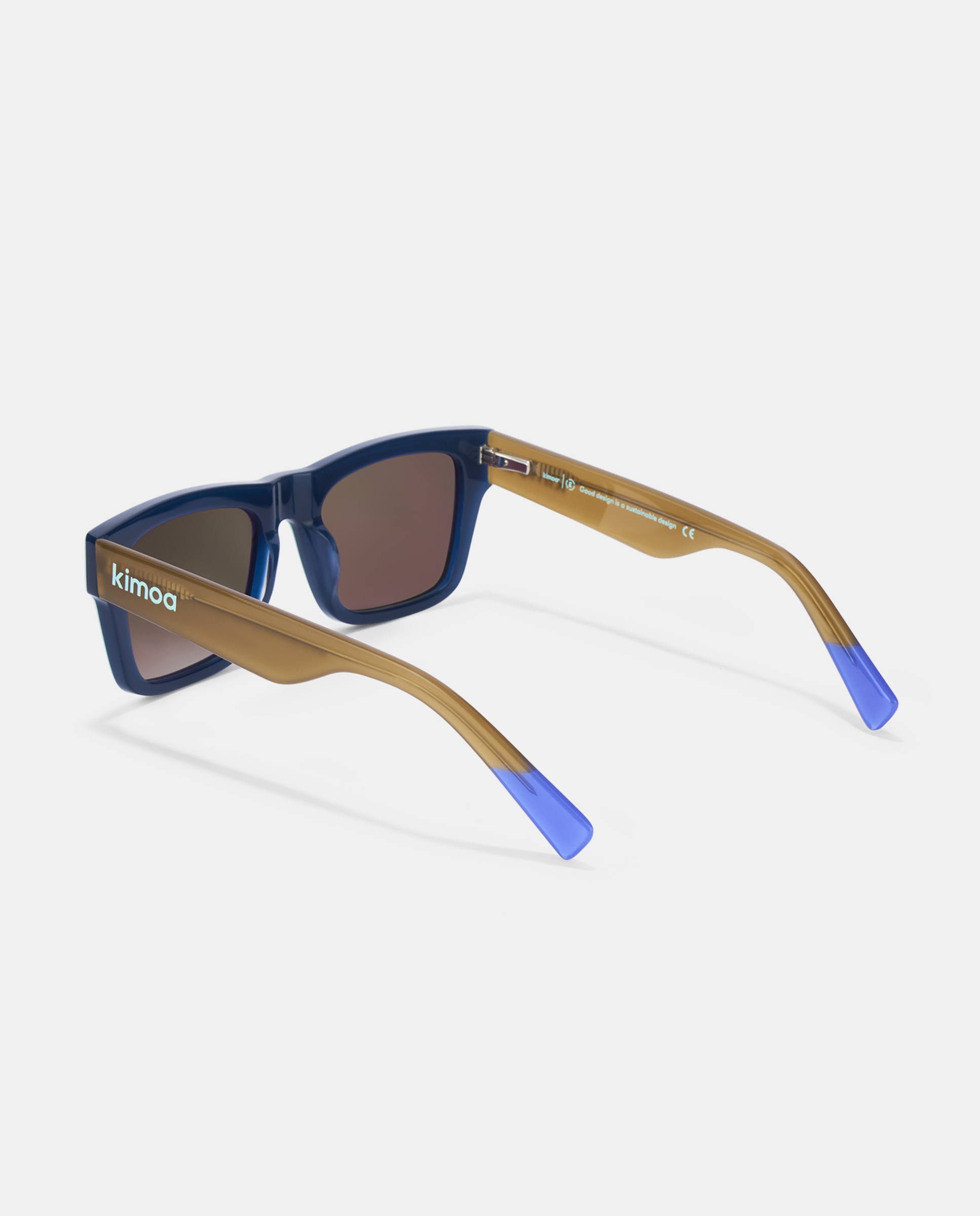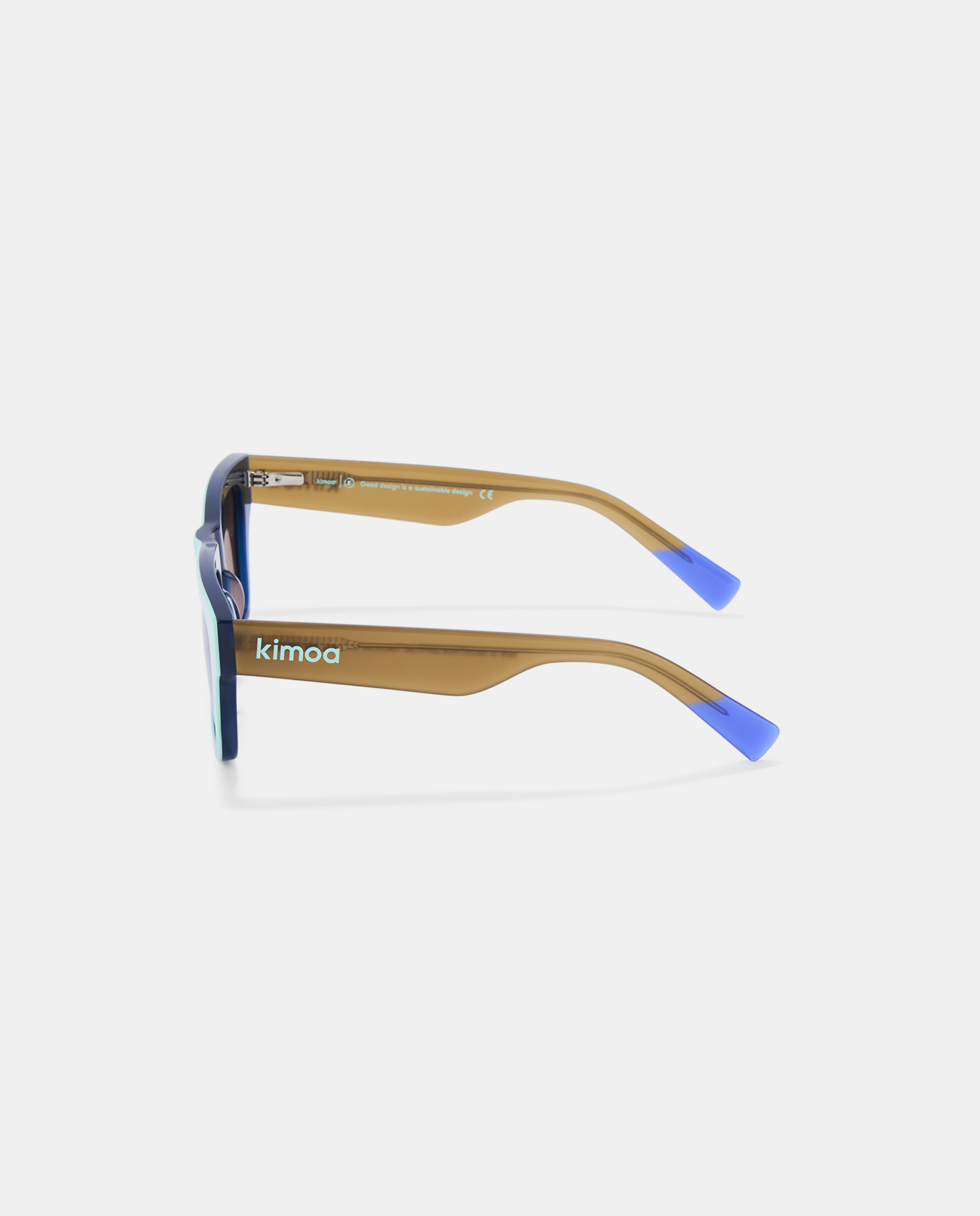 xThe Deptford Turquoise is an everyday lifestyle polarized multicolor sunglasses crafted in premium sustainable bio acetate, sourced from wood pulp and cotton fibers, making them eco-friendly and durable. Thick square two-color layers frame mixing solid light turquoise on the front and milky dark blue on the back, and milky camel bold temples with milky dazzling blue tips. Smokey dark brown color polarized lenses respect the environment and give a unique balance between clarity and resistance. The wide temples have a distinctive shape that makes this model both unique and trendy.