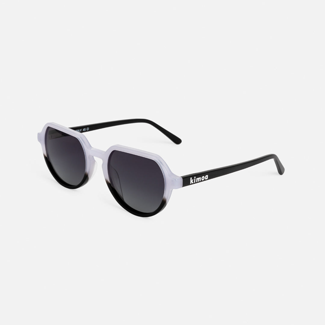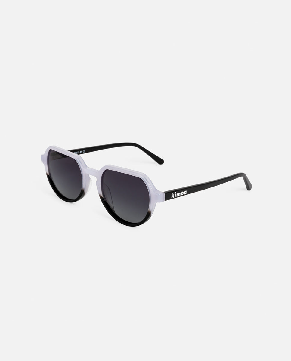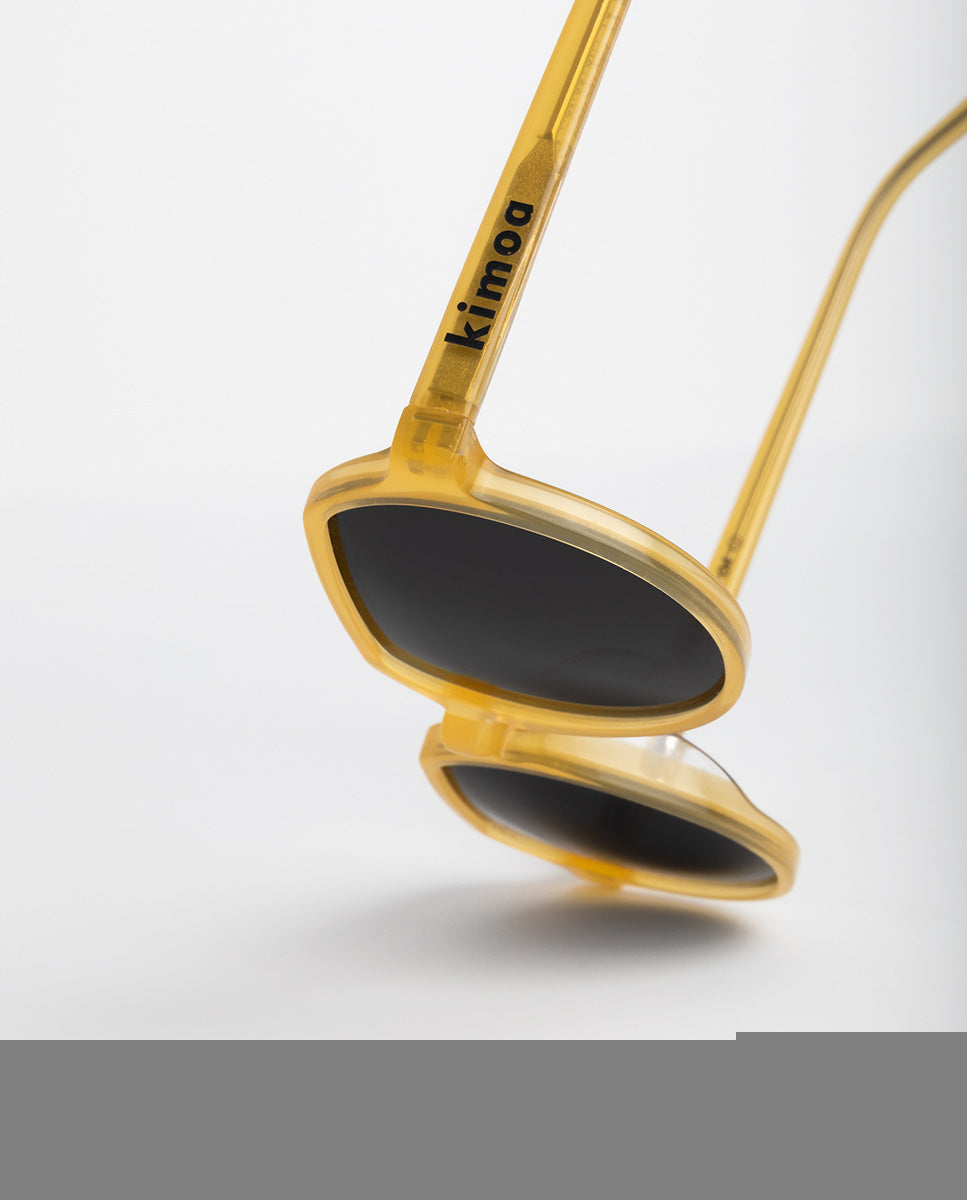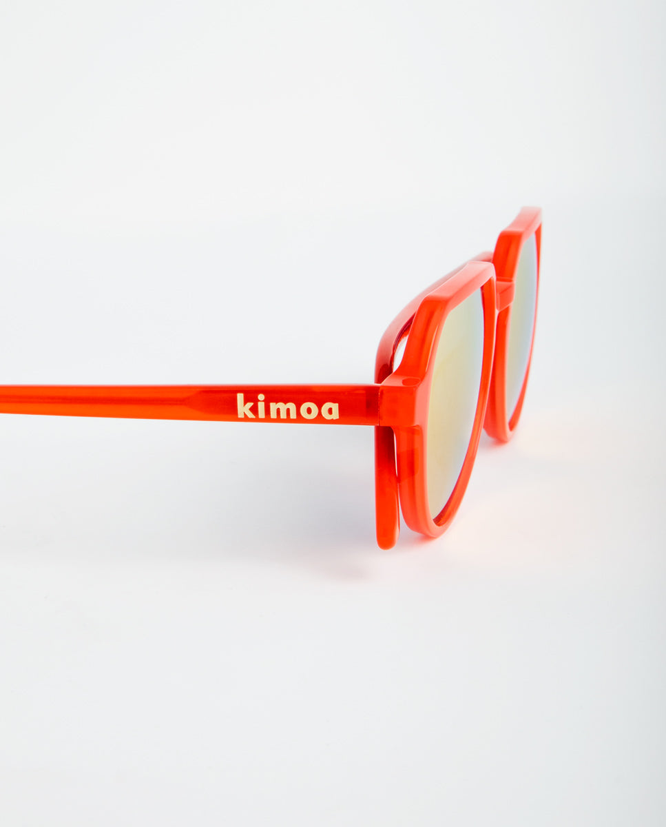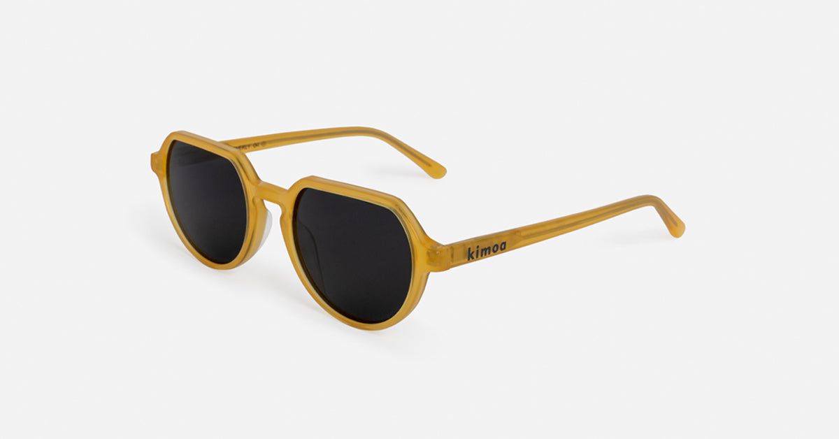 xOval shaped sunglasses with acetate frame material and kimoa logo embossed on the sides. Acetate is one of the most premium materials in sunglasses frames, it is extracted from cotton, it is anti-allergic and last longer than other materials.
