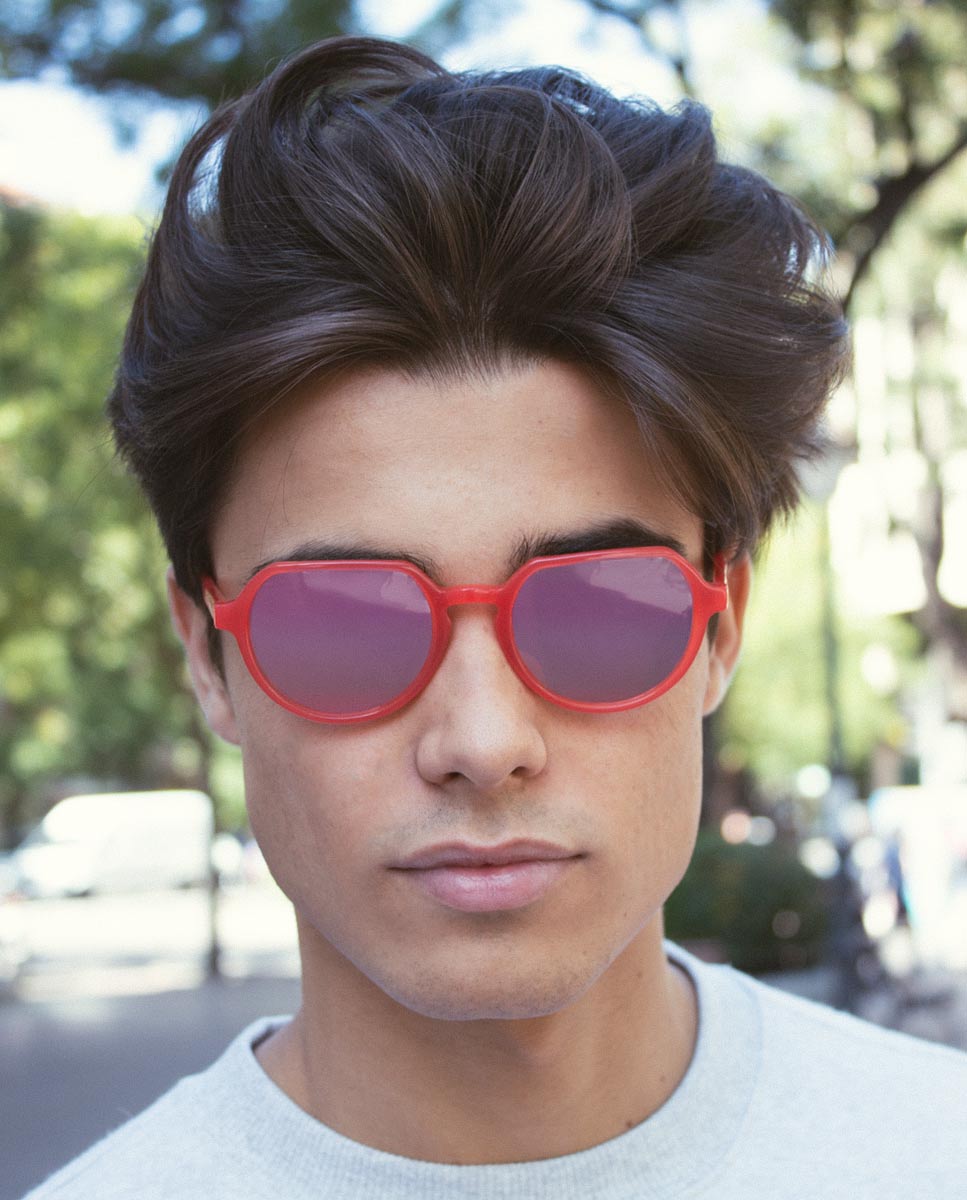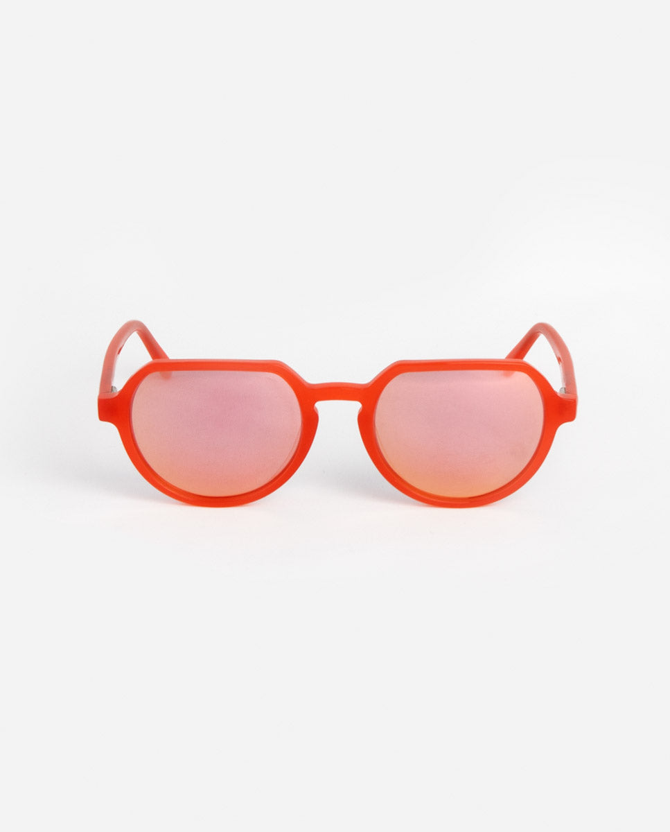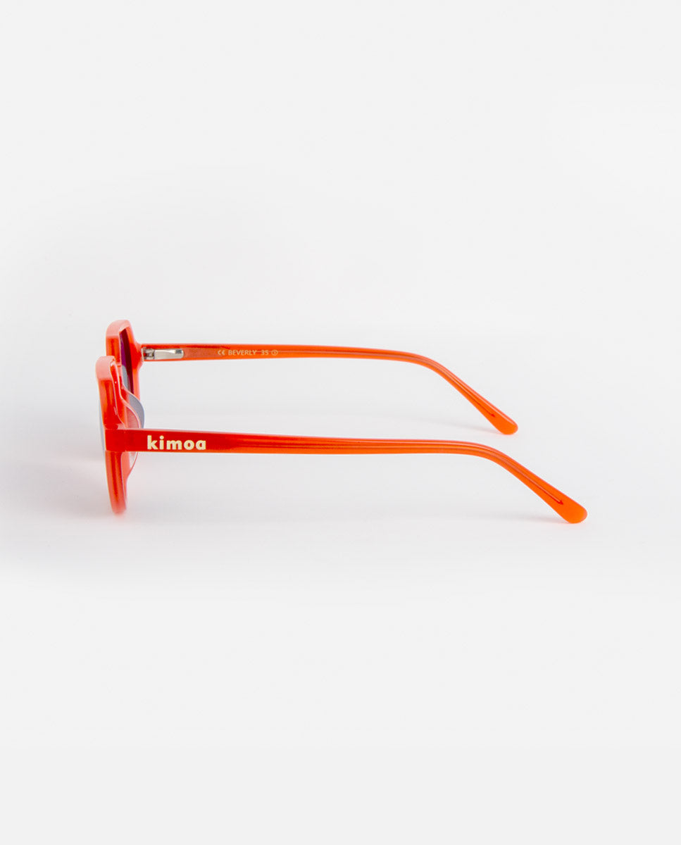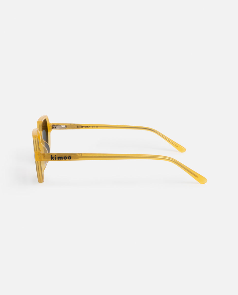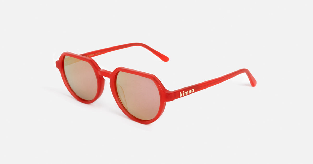 xOval shaped sunglasses with acetate frame material and kimoa logo embossed on the sides. Acetate is one of the most premium materials in sunglasses frames, it is extracted from cotton, it is anti-allergic and last longer than other materials.