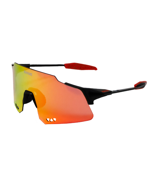 xLas gafas de sol deportivas Kimoa LAB 02_BR con montura negra y lentes de PC completamente rojas están diseñadas con nuestra tecnología más avanzada para maximizar el rendimiento deportivo..