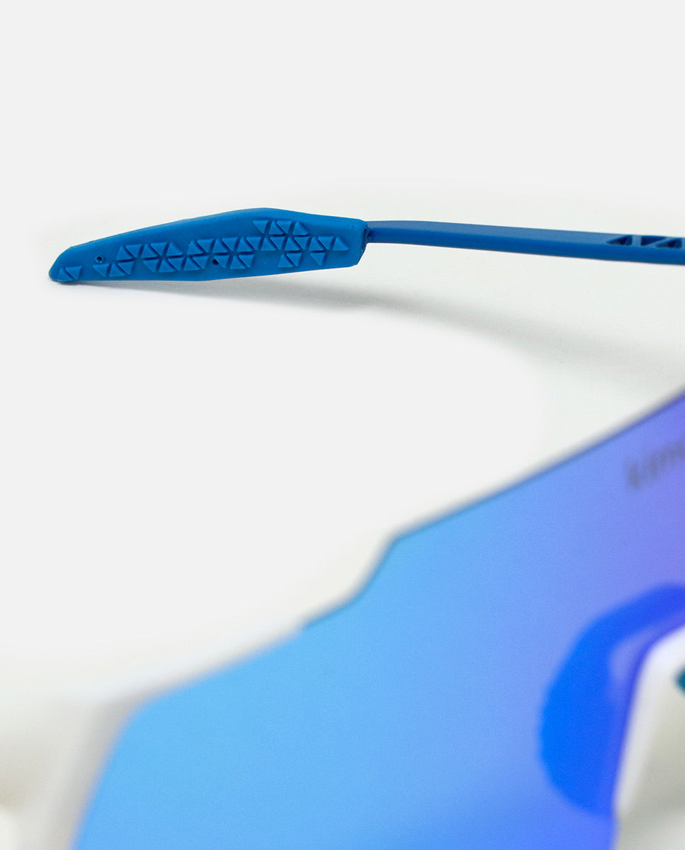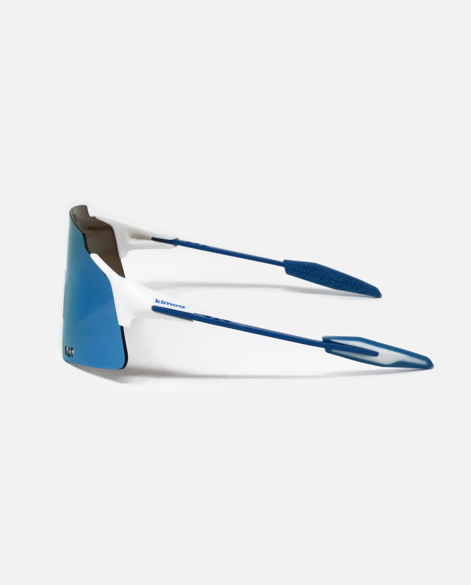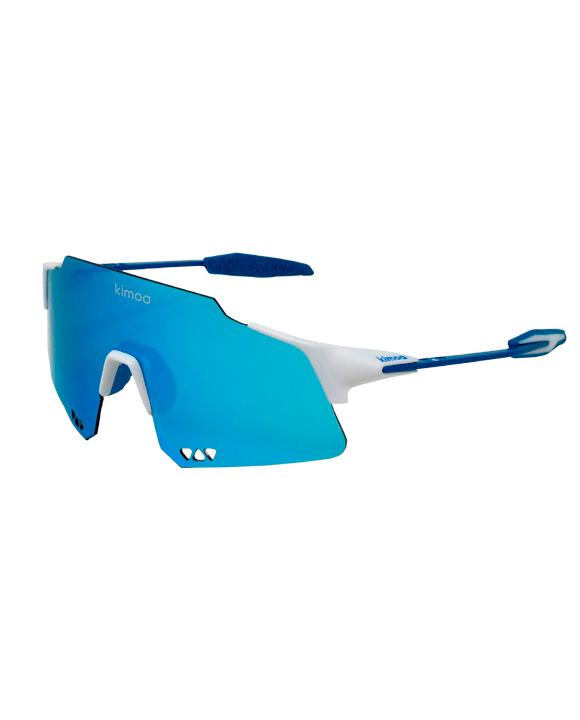 xLas gafas de sol deportivas Kimoa LAB 02_WB con montura blanca y lente de PC revo azul están diseñadas con nuestra tecnología más avanzada para maximizar el rendimiento deportivo.