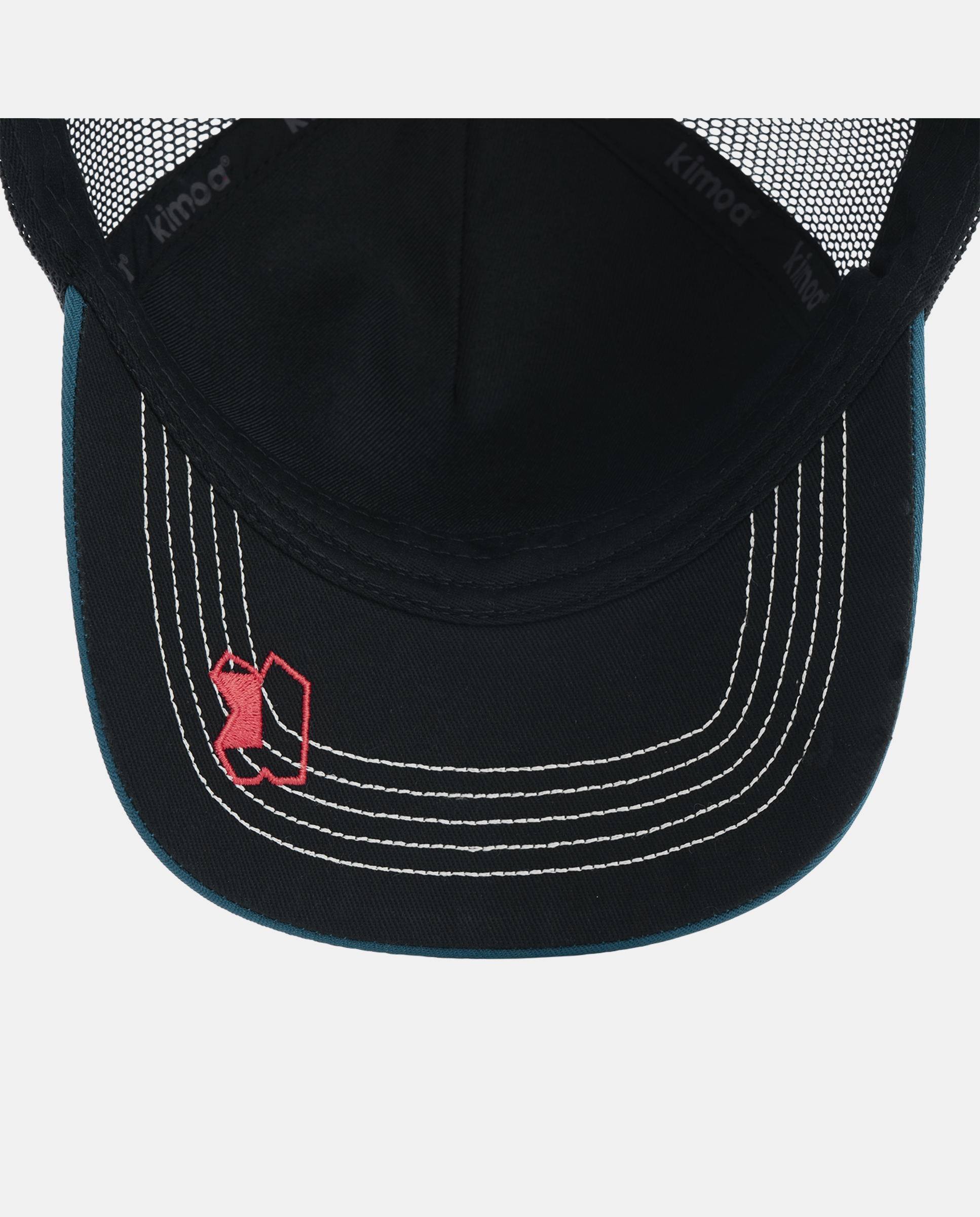 - The bill is in matching blue with a contrast red embroidered K logo on the underbill