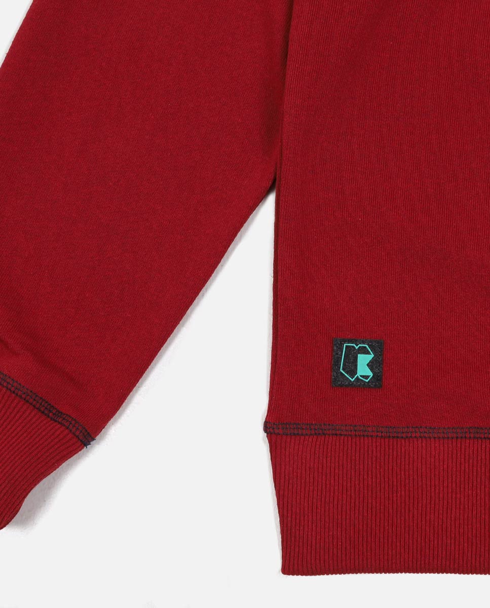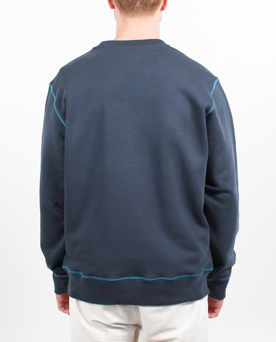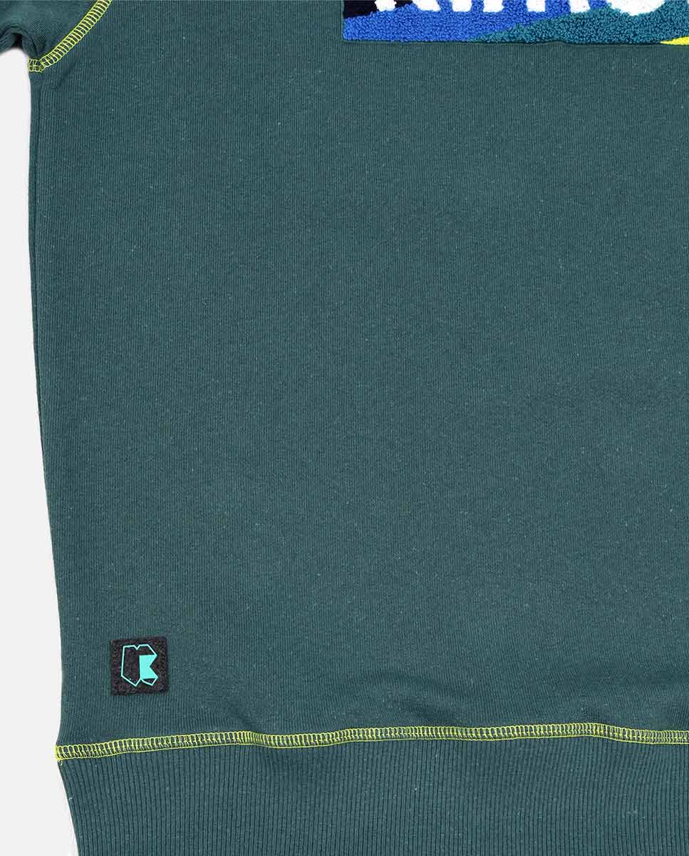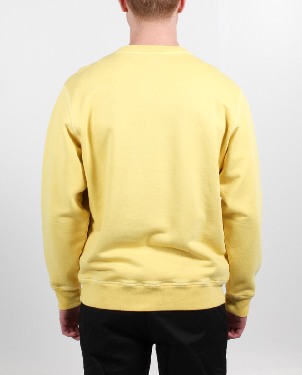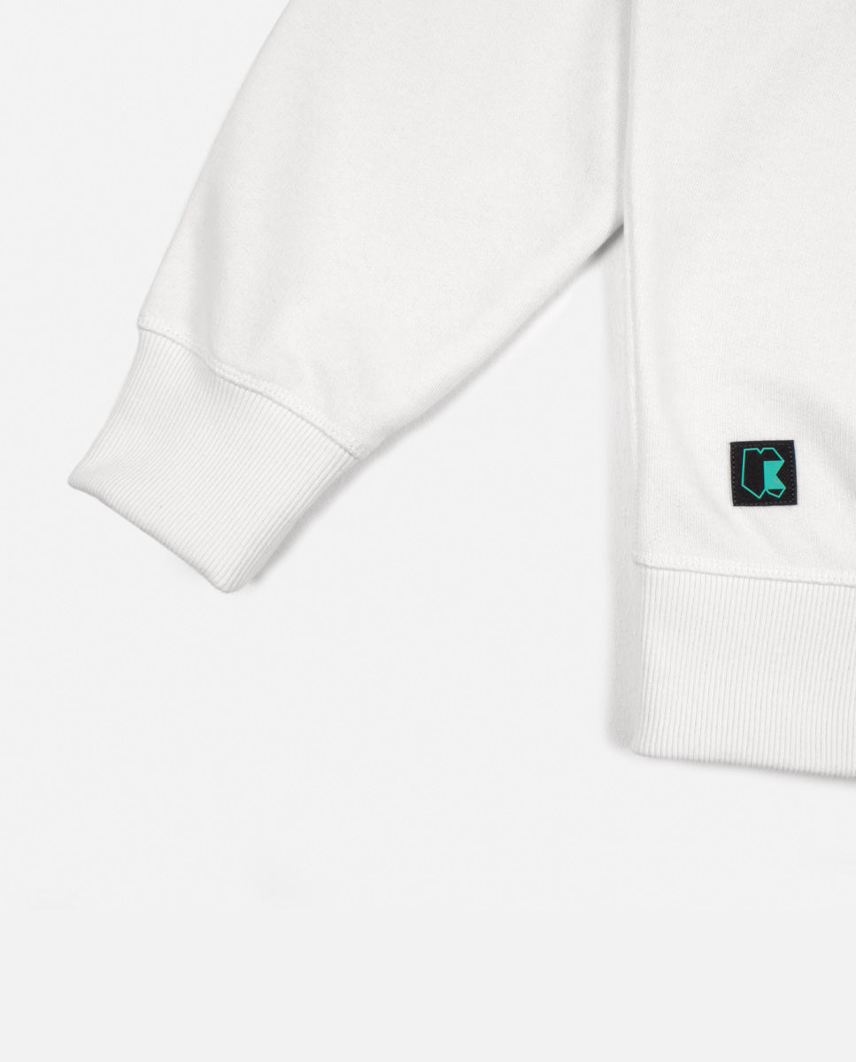 xWhite crewneck sweatshirt and striped towel fabric Kimoa logo at the chest.