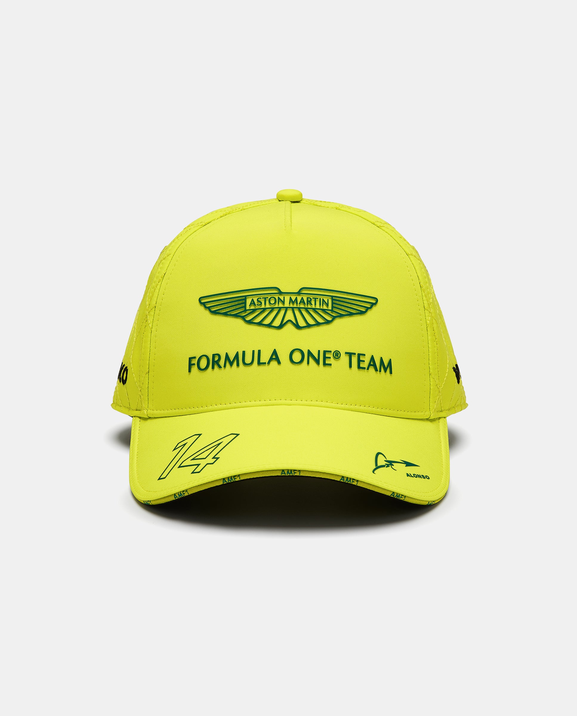 La gorra oficial del piloto, Fernando Alonso, en el Campeonato de Fórmula Uno® 2024, en color lima. Disponible en dos opciones de color, la gorra favorita de los fans es parte de la colección oficial 2024. Este modelo cuenta con detalles específicos de Fernando en la visera además de la marca actualizada del equipo Aston Martin Aramco Formula One® y del patrocinador.