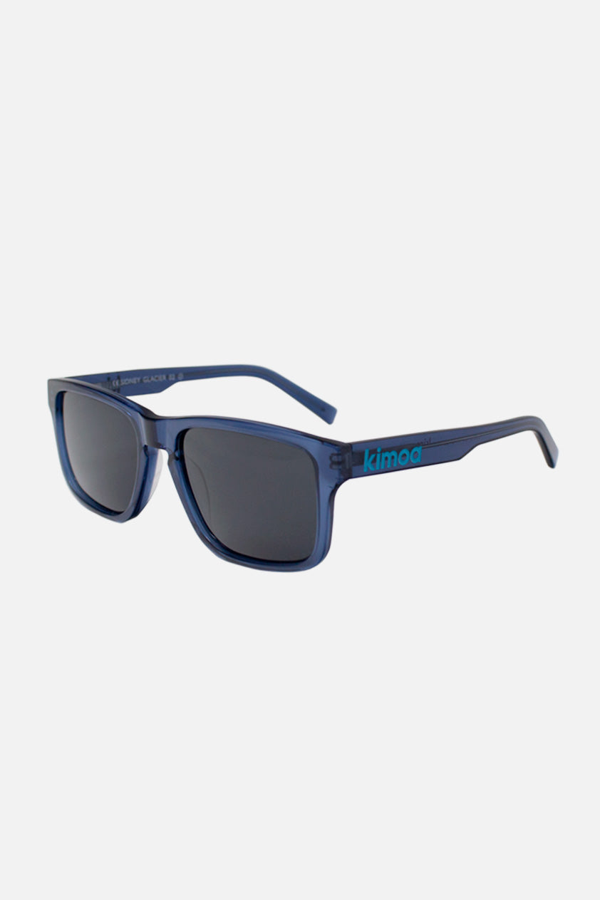 Gafas de sol Icónicas Sidney Glacier con montura de Bio-acetato cuadradas de color azul transparente y logo kimoa en ligero bajo relieve en las patillas de color azul claro. Lentes azules polarizadas. El Bio Acetato es un material biodegradable. La celulosa es un polímero natural que forma la columna vertebral de todo el reino vegetal. El plastificante tradicional ha sido reemplazado por un plastificante a base vegetal, lo que hace un bioplástico con un contenido de base biológica considerable.
