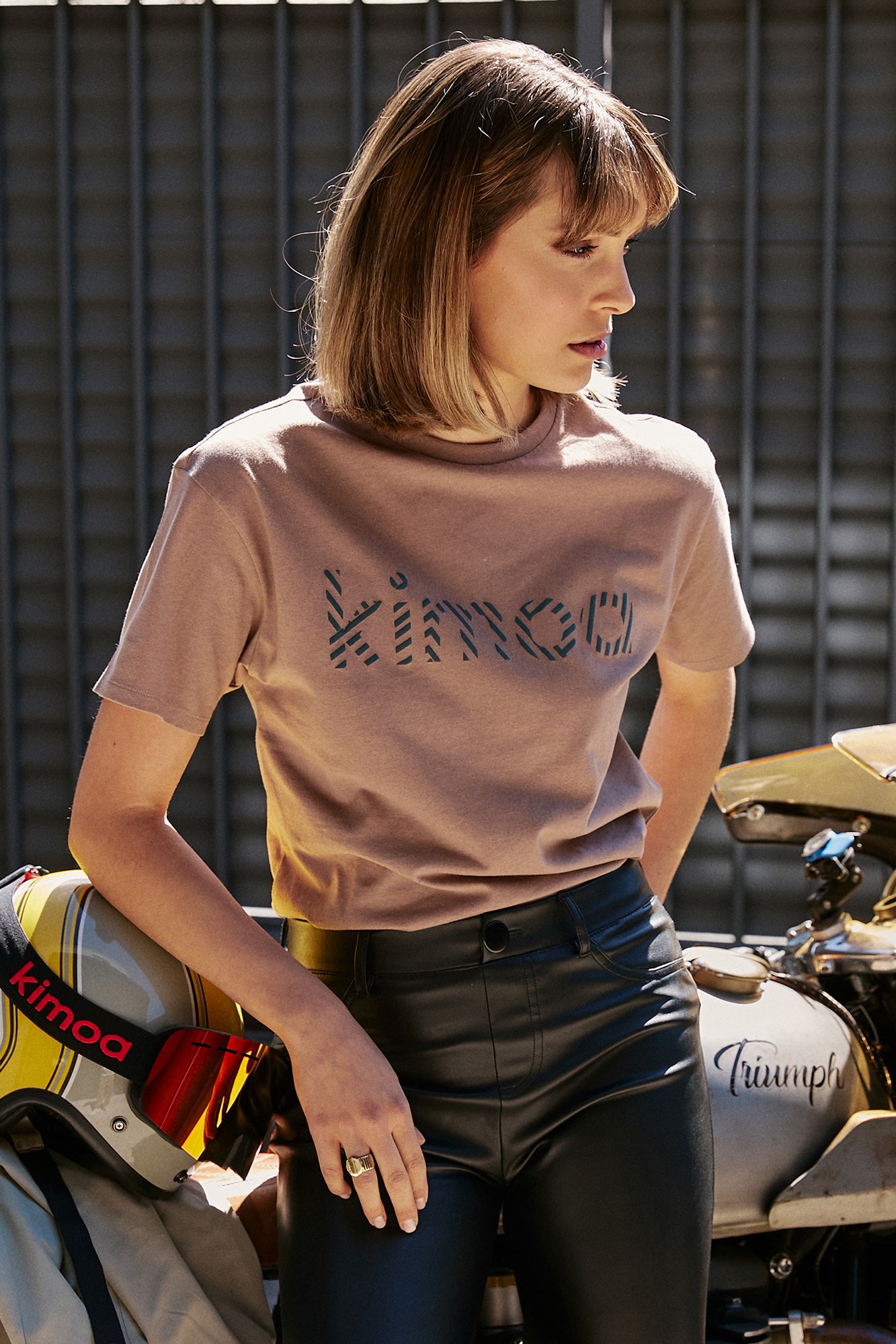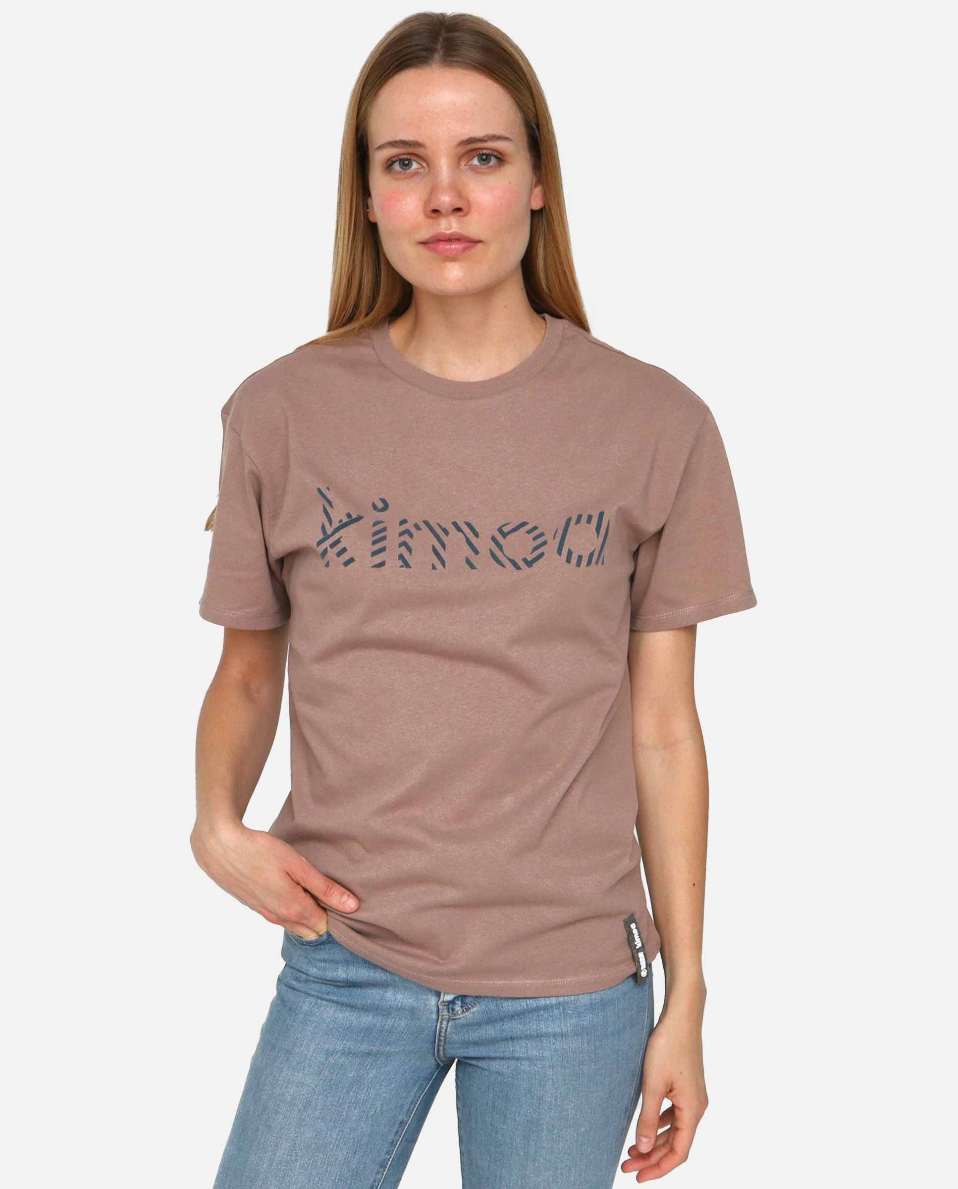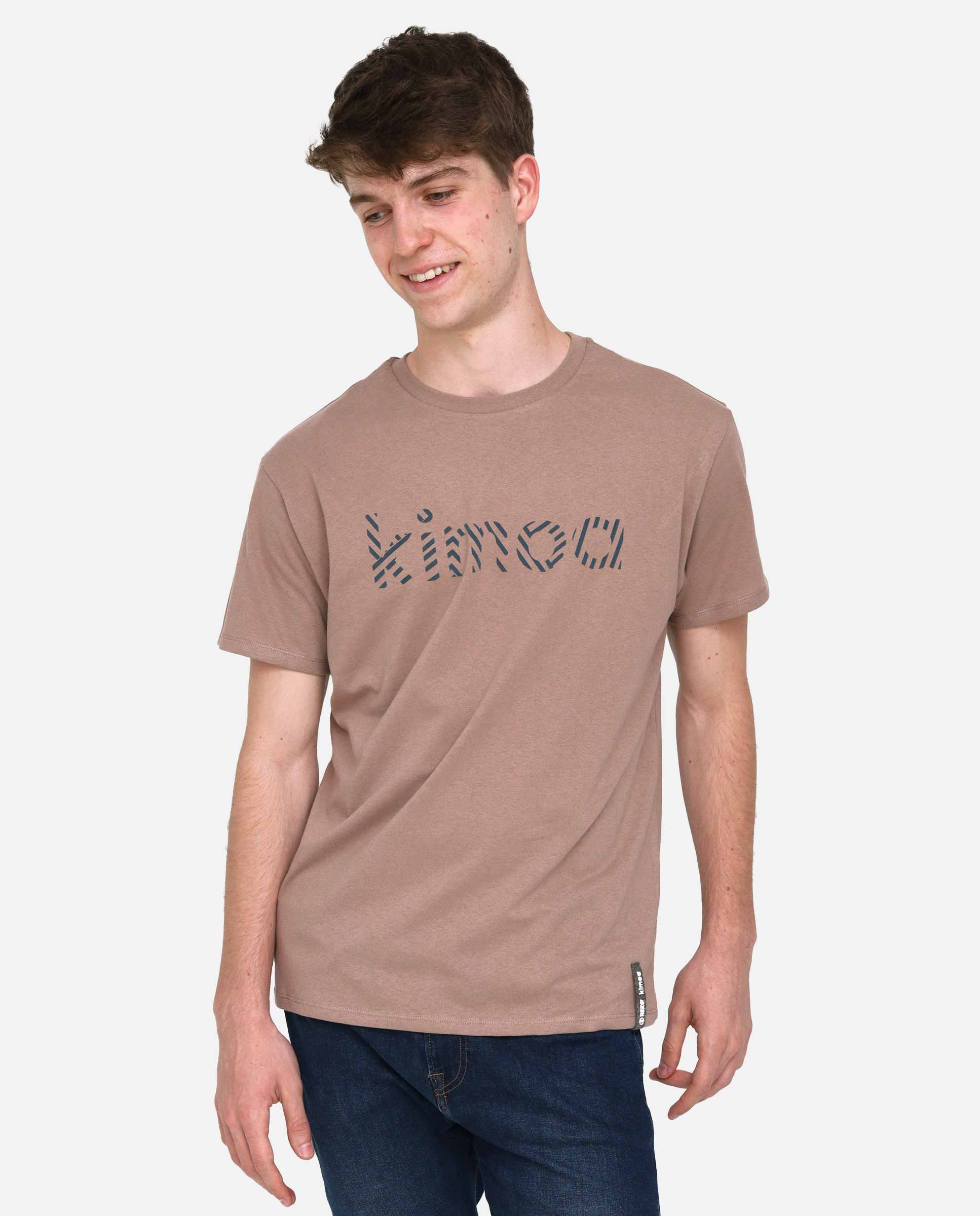xCamisa Kimoa Eco marrón del icónico estilo Kimoa con logo azul en estampado abullonado.
