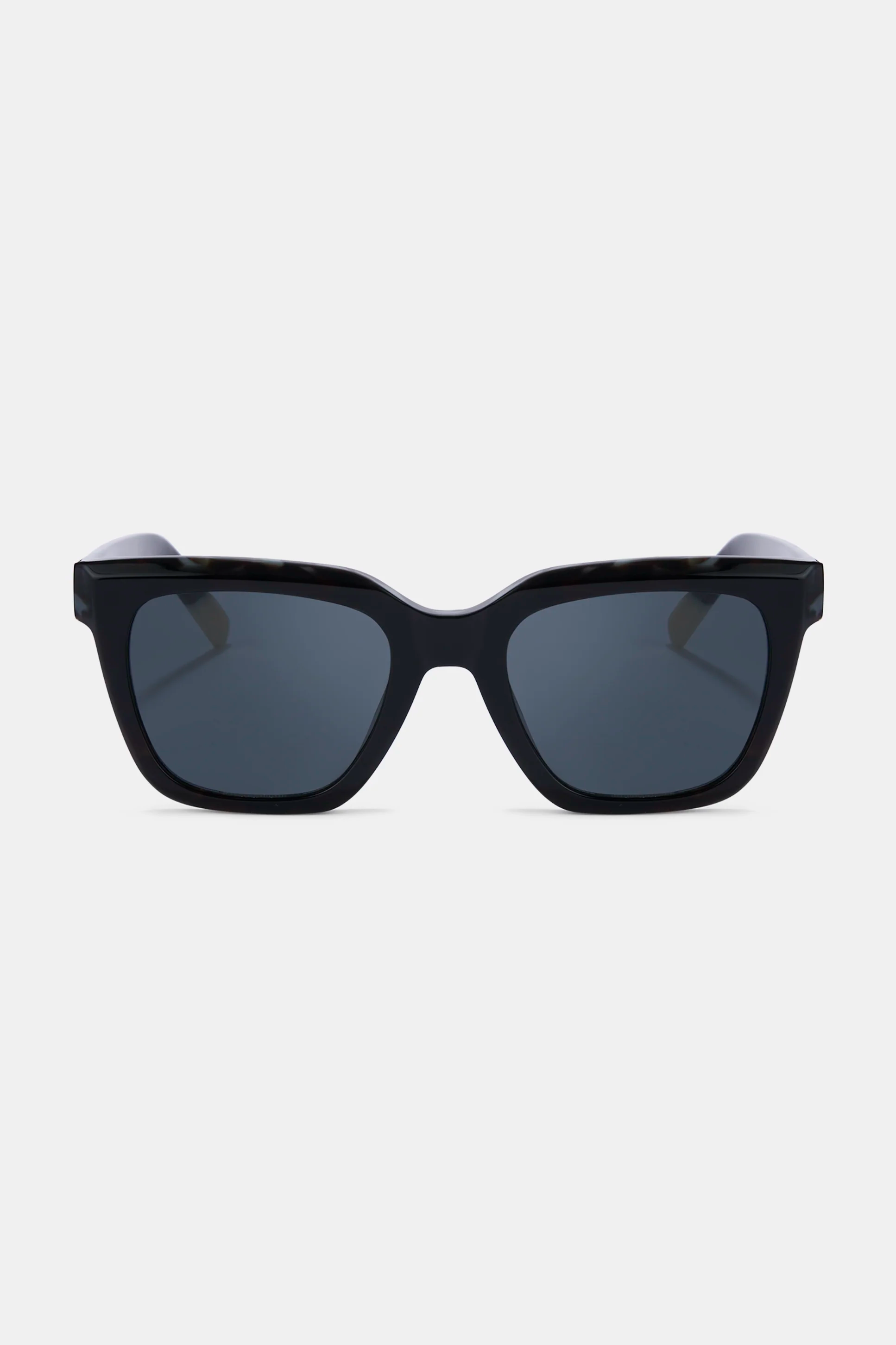 xTribeca Mix Havana Black, gafas de sol polarizadas ideales para el uso diario, elaboradas en bio acetato de primera calidad, obtenido a partir de pulpa de madera y fibras de algodón, lo que las hace duraderas y respetuosas con el medio ambiente. Marco frontal cuadrado y patillas en color negro sólido brillo. Marco interior e interior patillas con dibujo Havana negro y gris. Contraste de color en los terminales beige claro. Las lentes polarizadas de color negro ahumado respetan el medio ambiente y ofrecen un equilibrio único entre resistencia y claridad. La icónica montura de ojo de gato reinterpretada en esta silueta unisex.